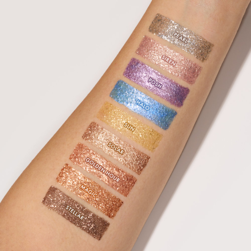 • Formula rezistenta la transfer si versatilitatea in aplicare transforma orice machiaj intr-un spectacol de lumini si reflexii multidimensionale, fie ca alegi sa-l folosesti singur pentru un efect dramatic, ca topper peste alte farduri sau ca baza pentru alte produse.