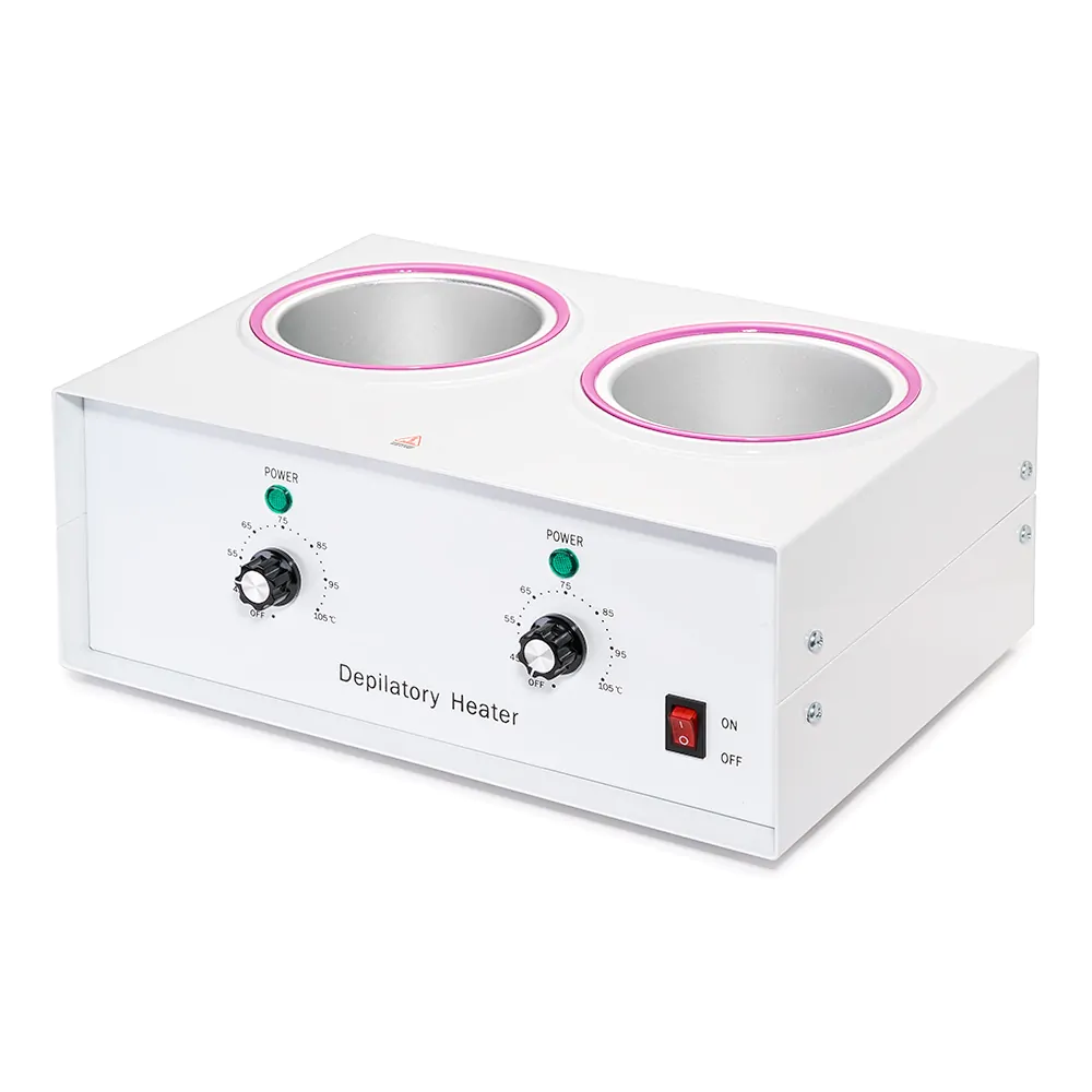 Incalzitor pentru ceara si parafina metalic cu doua compartimente. Fiecare compartiment al incalzitorului de ceara este dotat cu termostat reglabil al temperaturii, led si buton ON/OFF.