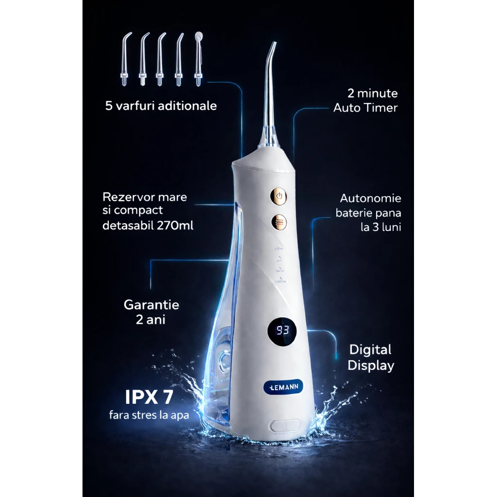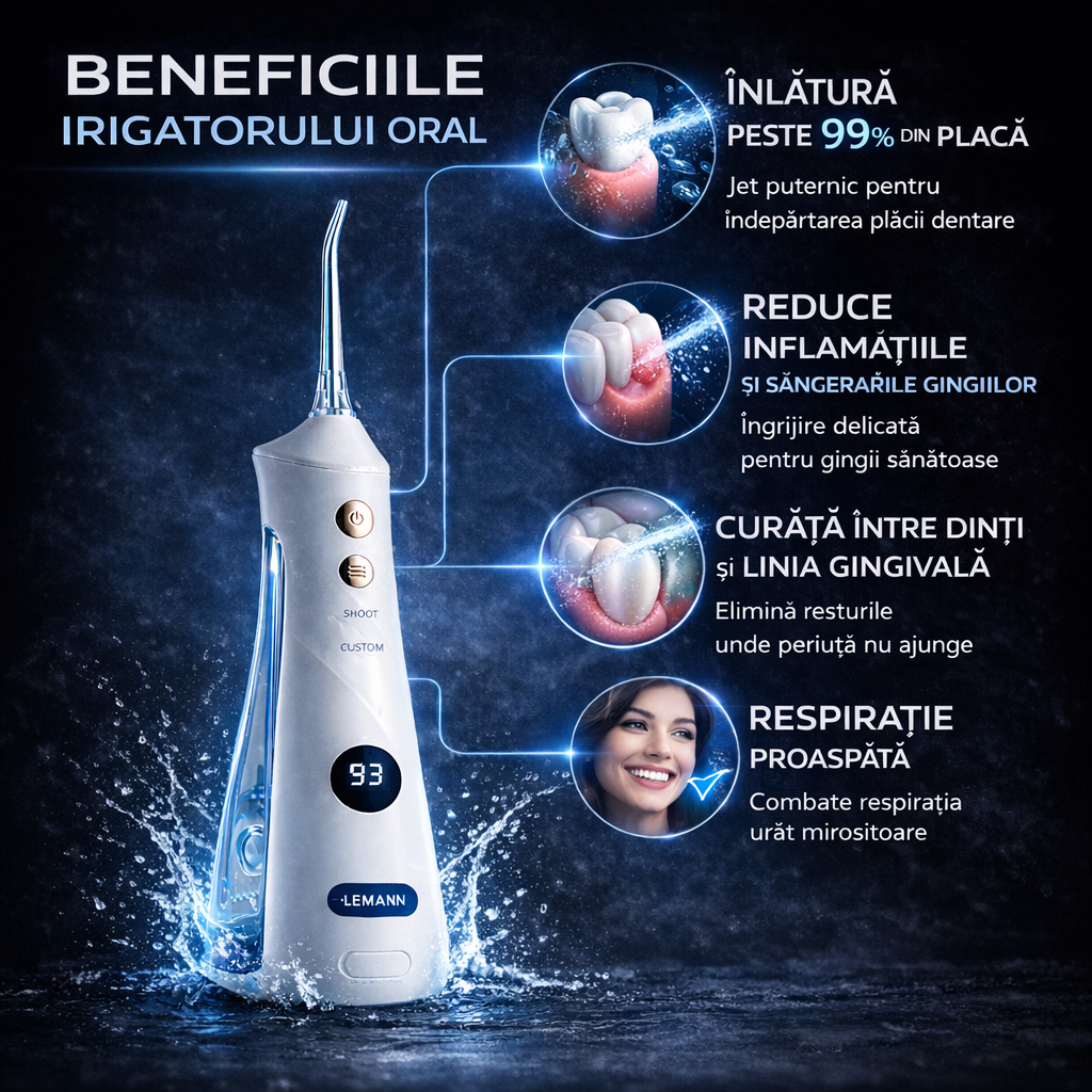 Beneficiile cheie ale irigatorului oral Lemann PRO-7000 includ: