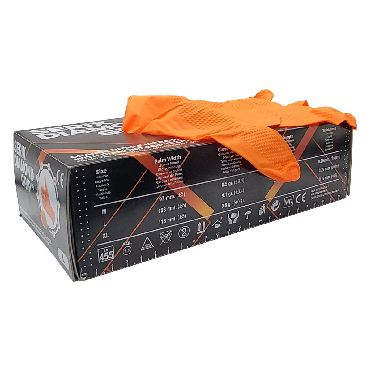 Manusi de Nitril, Textura Diamond Grip, 8.5 gr, Nepudrate, Portocalii, L, 50 buc, Serix