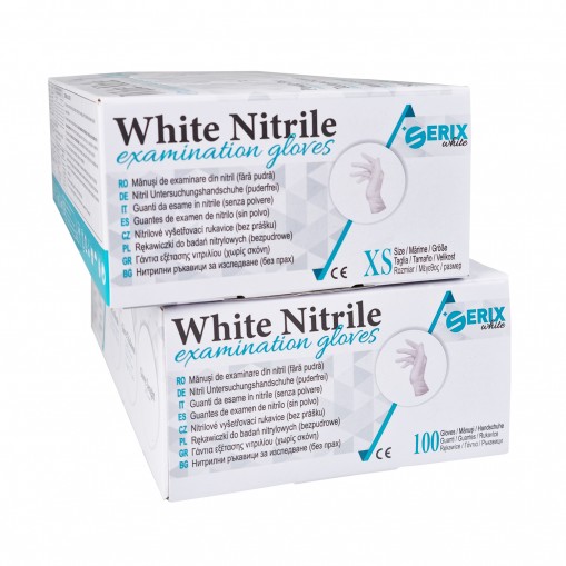 Set 100 Manusi Examinare Nitril Nepudrate Serix White (XS)