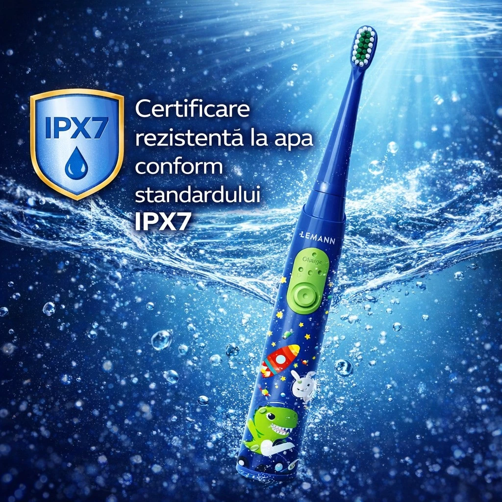 Periuță Electrică Lemann Blue Dino | Tehnologie Sonică | 4+ ani — Pentru că băieții nu se spală pe dinți. Până când au un dinozaur.