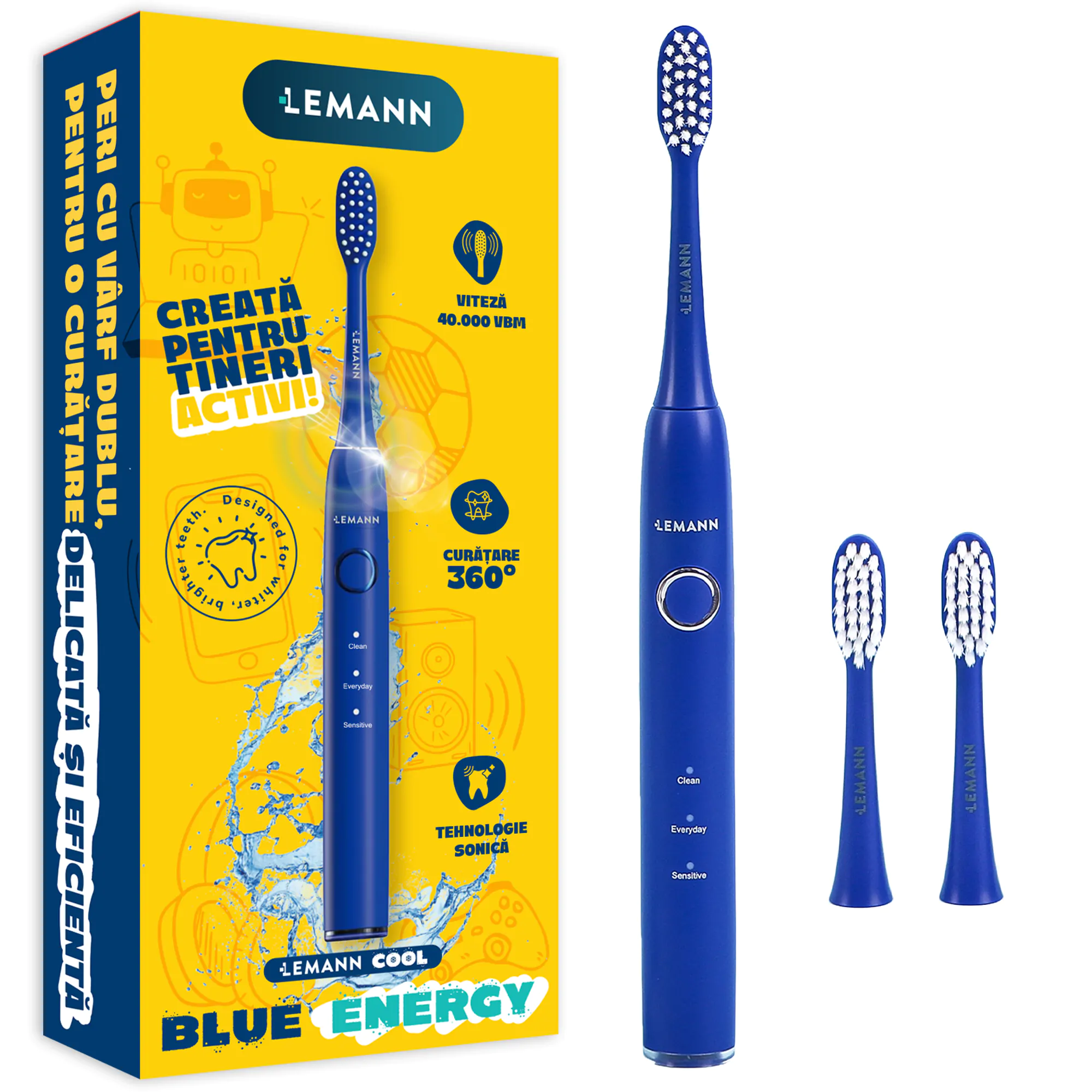 Periuta electrica pentru Copii (8+ ani) si Adolescenti – Lemann Cool Blue Energy