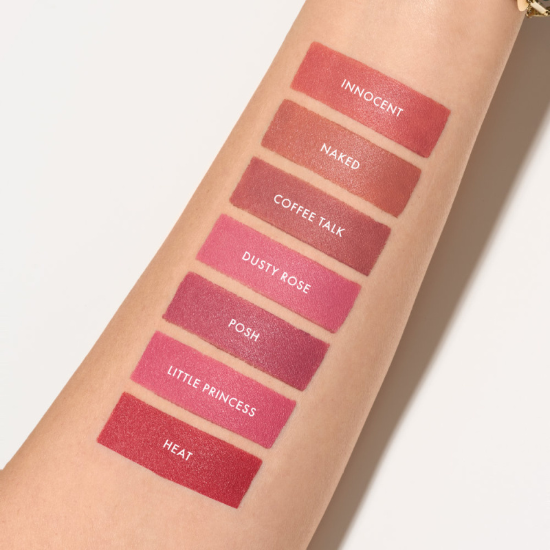 • Finish mat – Finishul mat elegant ofera buzelor tale un aspect modern si sofisticat, perfect pentru orice tip de machiaj, de la cel natural la cel intens.