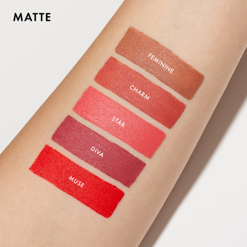 • Aspect sofisticat in varianta mata – Finisajul mat elegant ofera buzelor un aspect sofisticat si modern, perfect pentru look-uri rafinate care se mentin impecabil pe tot parcursul zilei.