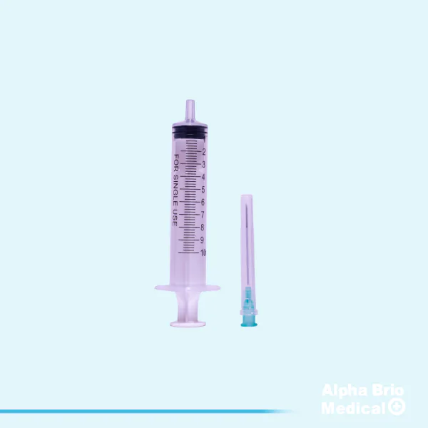 Seringa cu ac de 10 ml, tip Luer Slip, marca BIOSAFE, este ambalată individual în blistere pentru sterilizare și igienă maxime.