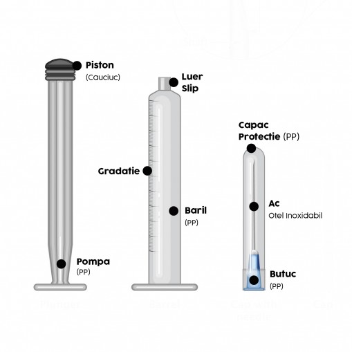 – Amboul seringii este de tip Luer slip;