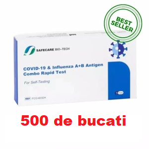 Testul Rapid Antigen COMBO COVID-19 și Gripă A+B este un test certificat UE pentru uz profesional/casnic.