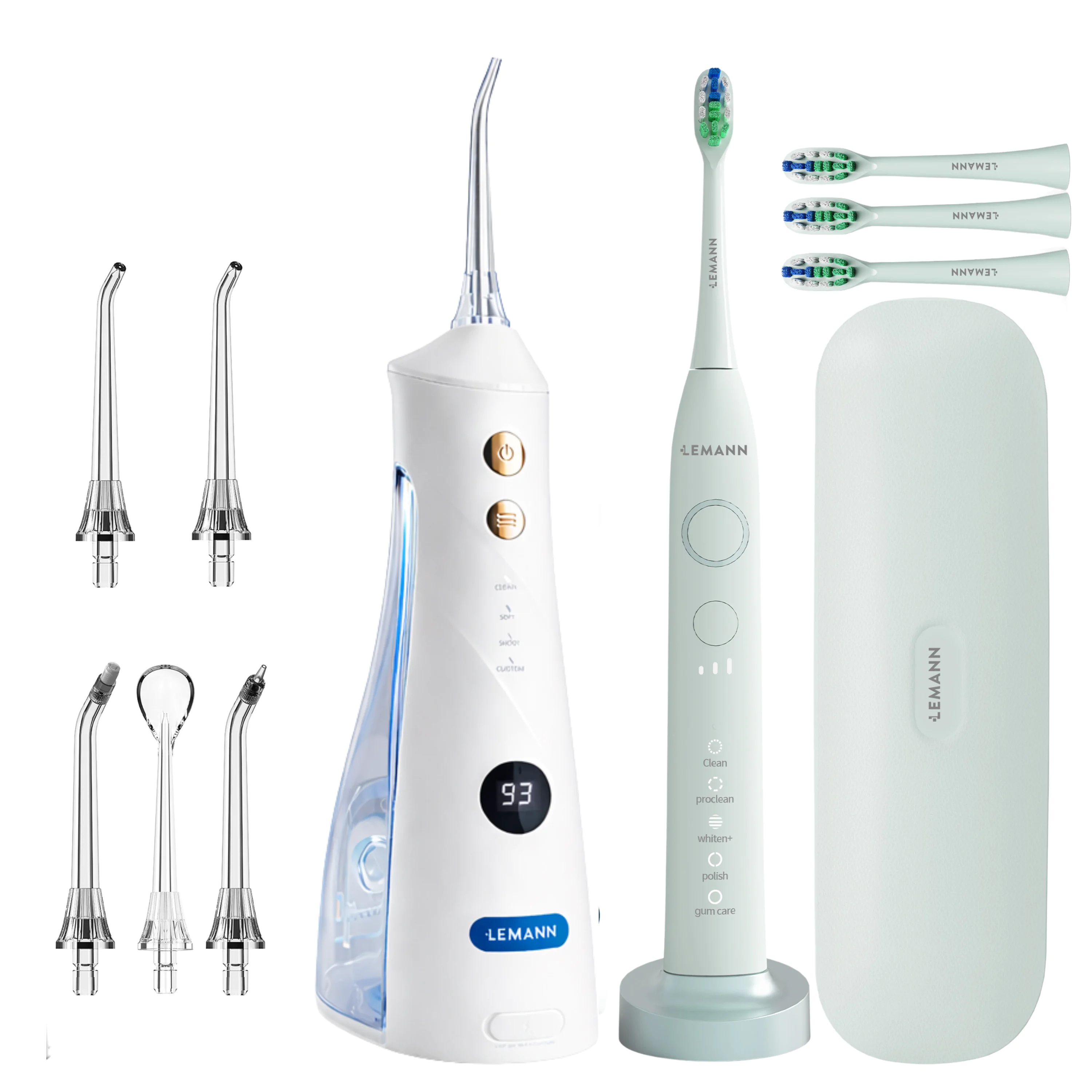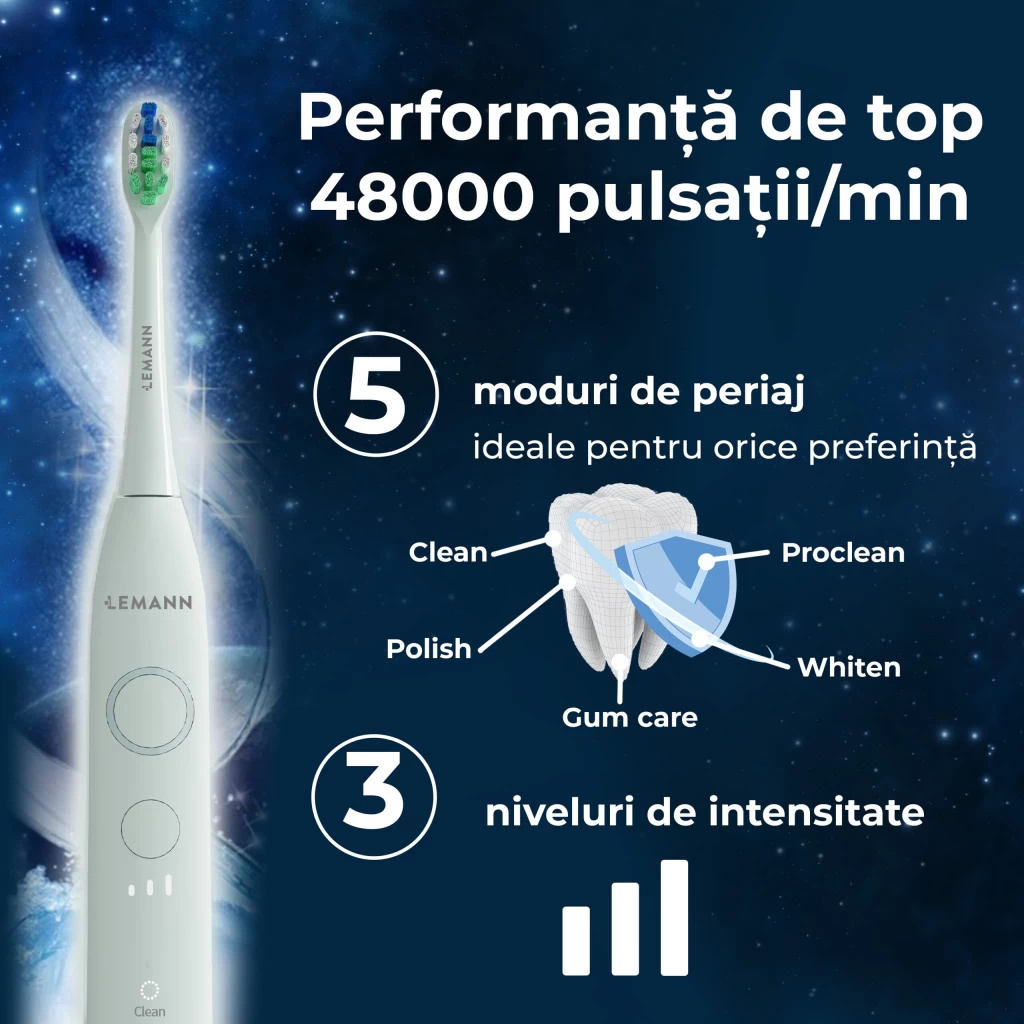 Setul de Igiena Orala LEMANN PRO, combinatia perfecta intre performanta si inovare pentru un zambet radiant si o igiena orala optima. Cu periuta de dinti Lemann® UltraSonic Pro48 si irigatorul oral Lemann PRO-7000, beneficiati de o curatare superioara si un masaj gingival placut, asigurandu-va o experienta completa de igiena orala. Setul LEMANN PRO transforma rutina de igiena orala intr-o placere si ajuta la mentinerea sanatatii dentare.